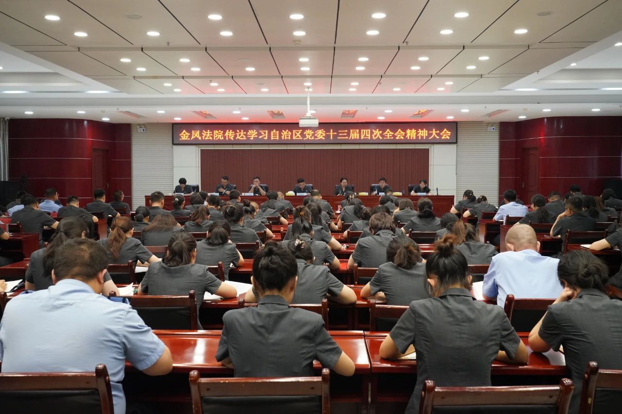 8月7日下午,金凤区人民法院召开全院大会,传达学习自治区党委第十三届四次全会精神大会和自治区“1+37+8”系列文件精神,并研究贯彻落实措施。
